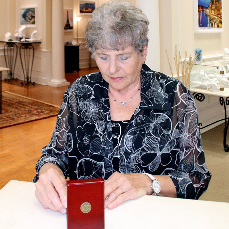 I wanted to give you an update that Debbie loves her newly made ring and she did say, “Yes!” After I picked the ring up last Friday June 14th nothing went as planned. I decided there was no keeping the secret anymore and I went ahead and gave Debbie the ring that night. I had special plans made to propose later in the summer, but after seeing the ring in person—and your nice presentation—those plans went out the window.