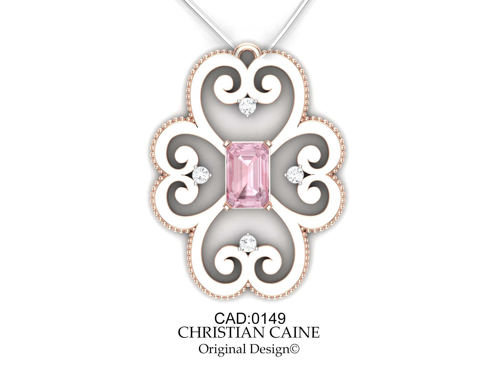 Beautiful  Coeur de Paris©  large version.  Featured in 14karat rose gold with an Emerald cut Morganite and four ideal cut round diamonds..  simply stunning!