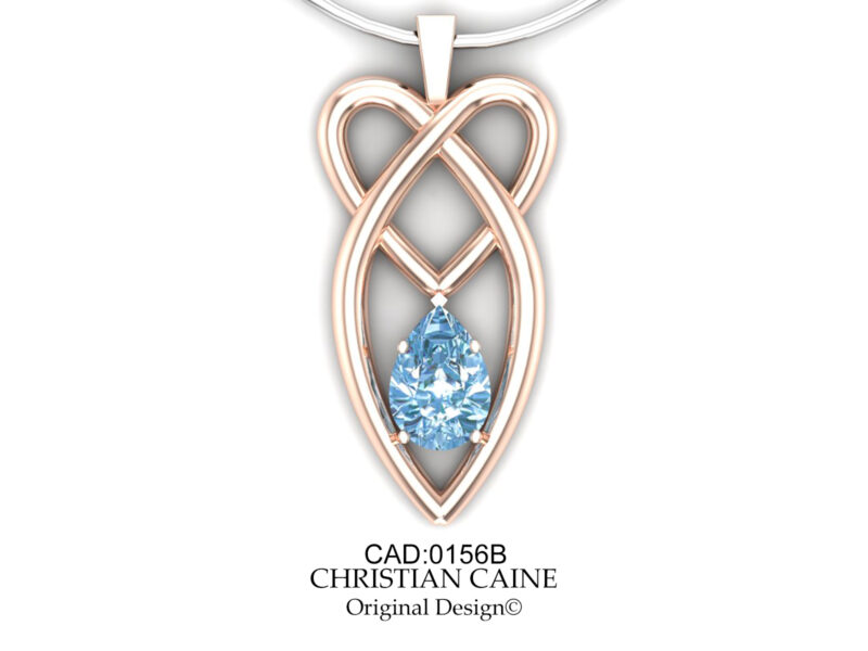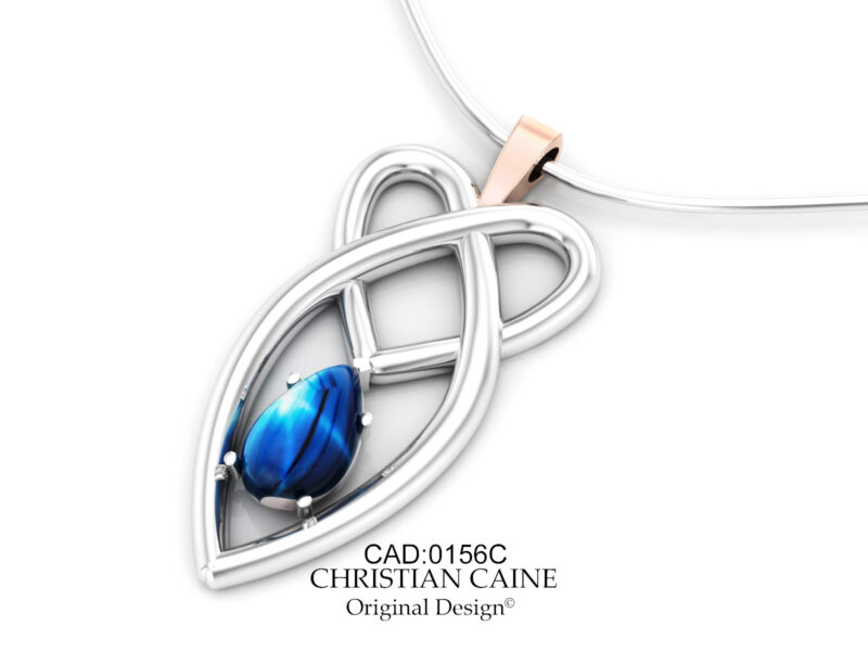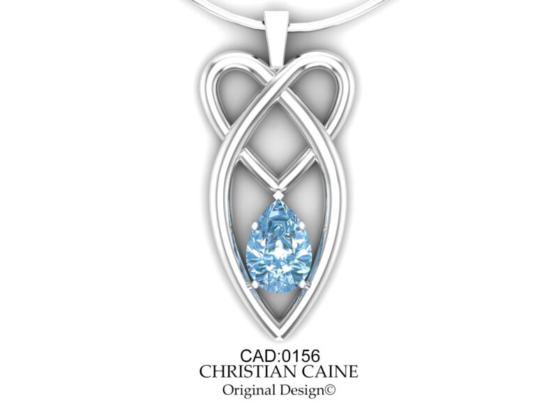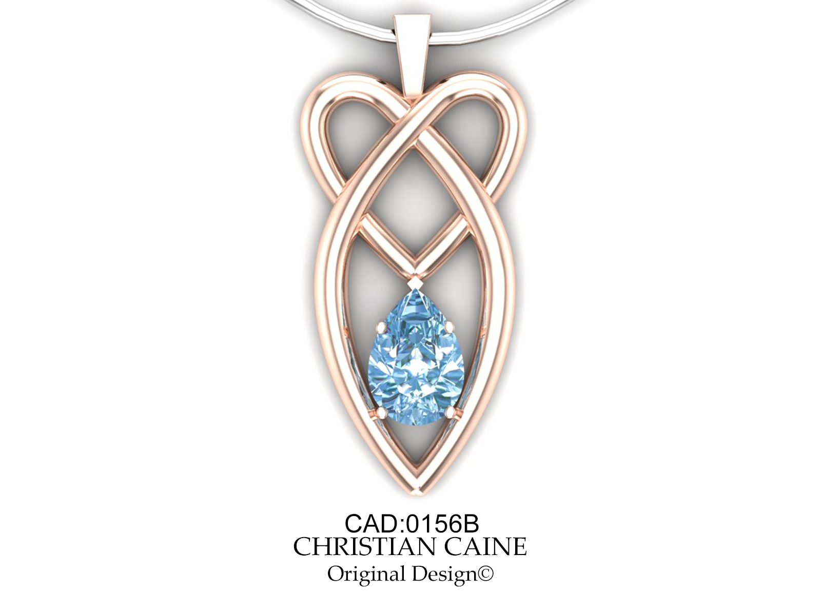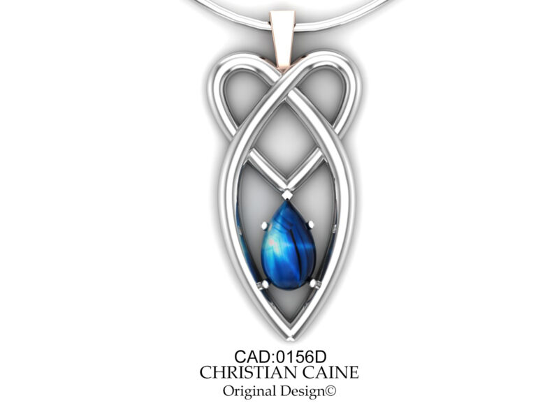 CC Original Design. A Celtic style pendant with a pear shaped blue star sapphire. Unique and stunning design for very a very special couple!