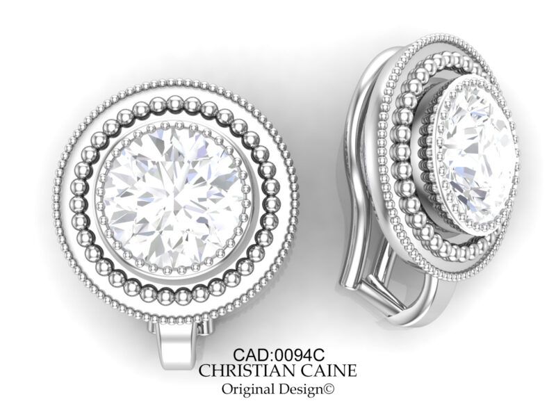 CC Original Design. Diamond omega clip back earrings. Your choice of gemstone or fine diamond, customizable motif and finishes available. Timeless!