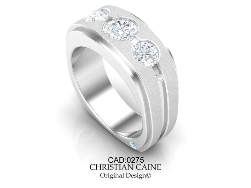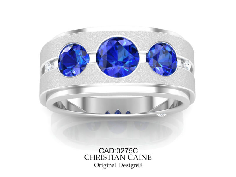 CC Original design,  a very cool gents band with your choice of gemstones in  flush style settings! Center bright cut groove with channel set ideal cut diamonds!